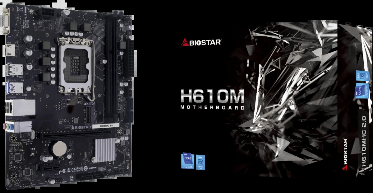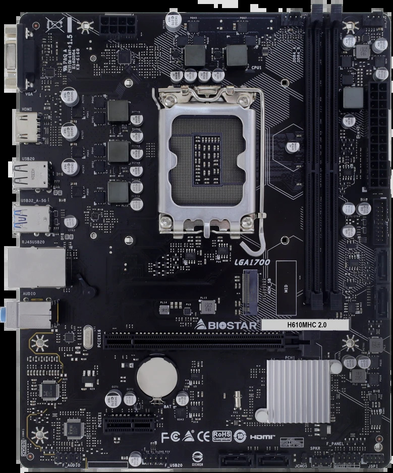 Материнская плата Biostar LGA1700: H610MHC 2.0 [H610, 2*DDR4, 1*PCIEx16, 1*PCIEx1, 4*Sata3, 1*M.2, 2 порта*USB3, D-Sub, HDMI, microATX]